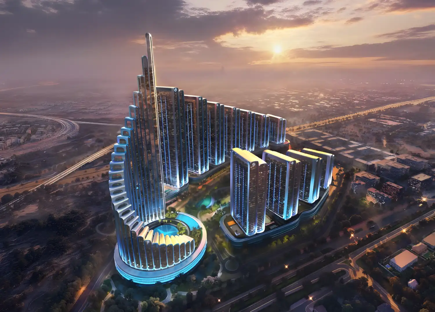 Binghatti City at Meydan, Dubai is not a residential development. It is a fully integrated branded city that redefines how people live, move, connect, and belong. Created as the world’s first Mercedes-Benz branded city, this landmark destination introduces a new global benchmark in branded real estate at city scale.